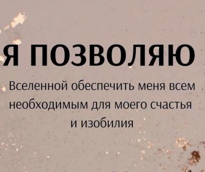 Сохраняя хорошее и крепкое своё здоровье, я лишилась лишних пять килограмм в массе своего тела! И теперь я стройная с плоским животом прекрасная очаровательная женщина! У меня с моей прекрасной семьёй теперь есть замечательная чудесная комфортная просторная квартира, близко с школой, в которой учится мой прекрасный мой здоровый сын!!! Каждый день 2026 года я принимаю от Вселенной волшебные радости и чудесные приятности каждый день, я с радостью принимаю все приятные блага для себя и своей семьи!!!!!!!!! БЛАГОДАРЮ!!!09-12-2025 Автор: виолетта