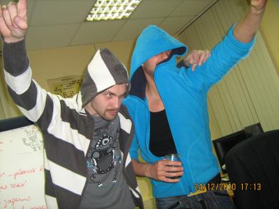 Коллектив состоял из 4х человек, включая меня, и было довольно скучно. Очень жесткий график, недопустимость опоздания на 5 минут, очень сложный код, вобщем, проблем хватало.